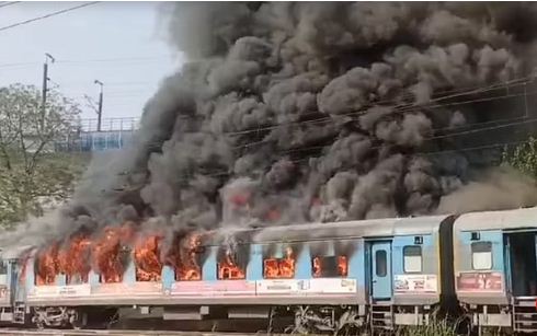 दिल्ली में चलती ट्रेन में लगी आग, दमकल कर्मी आग पर काबू पाने में जुटे