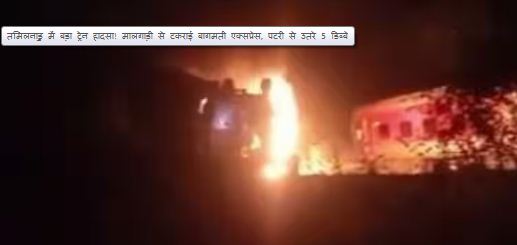 अभी-अभी: तमिलनाडु में ट्रेन हादसा: मालगाड़ी से टकराई बागमती एक्सप्रेस, पटरी से उतरे 5 डिब्बे, कई लोगों के घायल होने की खबर