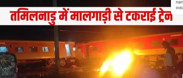 एक एक्सप्रेस ट्रेन तमिलनाडु के कावरपेट्टई में एक खड़ी ट्रेन से टकरा गई। जिसके परिणामस्वरूप कई लोग घायल हो गए। इस घटना के कारण घटनास्थल पर आग भी लग गई। प्रारंभिक रिपोर्टों से पता चलता है कि यह घटना ट्रेन संख्या 12578, मैसूर-दरभंगा एक्सप्रेस और एक मालगाड़ी से जुड़ी है। जानकारी के मुताबिक, दरभंगा एक्सप्रेस ने स्टेशन पर खड़ी मालगाड़ी को पीछे से टक्कर मारी है. घायलों की सीमा और दुर्घटना की परिस्थितियों के बारे में रेलवे अधिकारियों से आगे की जानकारी का इंतजार है। तिरुवल्लूर के जिला कलेक्टर टी प्रभुशंकर ने बताया कि बचाव कार्य जोरों पर है। घटना के बाद से अब यह सवाल भी उठने लगा है कि आखिर जिस पटरी पर मालगाड़ी पहले से खड़ी थी पर उस पर एक्सप्रेस ट्रेन कैसे आ गई है? क्या लाइन मैंन की तरफ से कोई गड़बड़ी हुआ या फिर कोई बात थी. टक्कर इतनी जोरदार थी कि काफी दूर तक आवाज सुनाई दी थी. टक्कर के बाद स्टेशन पर भी अफरा तफरी मच गई.