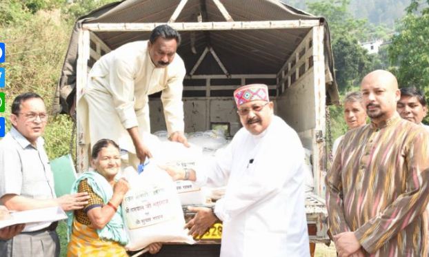 पौड़ी। विधानसभा क्षेत्र चौबट्टाखाल के तहसील बीरोंखाल के अन्तर्गत ग्राम सुकई में गत माह आयी आपदा से प्रभावित परिवारों को क्षेत्रीय विधायक प्रदेश के कैबिनेट मंत्री सतपाल महाराज और उनके पुत्र भाजपा युवा मोर्चा प्रदेश कार्यकारिणी सदस्य सुयश रावत ने राहत सामग्री का वितरण किया।